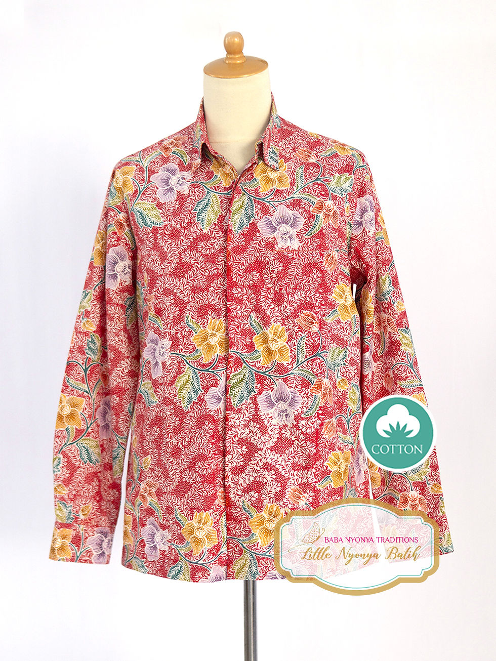 Introducing the Baba Handmade Long Sleeve Cotton Stamp Batik Shirt - a beautifully crafted shirt that exudes charm and elegance. Made with high-quality cotton and featuring traditional batik stamping techniques, this shirt is a true work of art.
