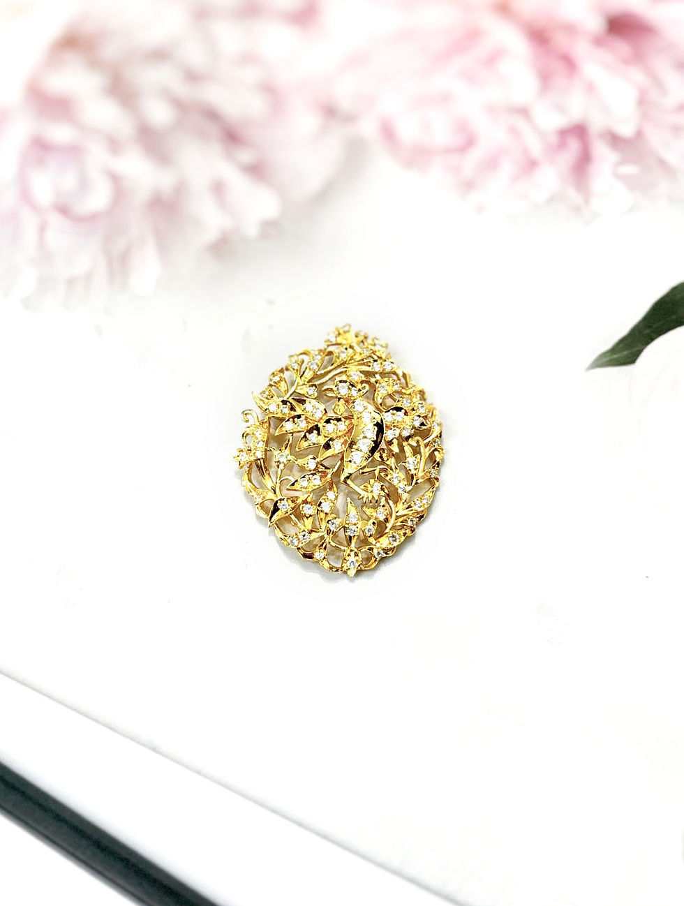 Peranakan costume jewellery, also known as Nyonya jewellery, is a unique and distinctive style of jewellery that originates from the Peranakan community, which is a fusion of Chinese and Malay cultures. These pieces are usually made with intricate details and they are worn by women to complete their traditional Peranakan outfit.